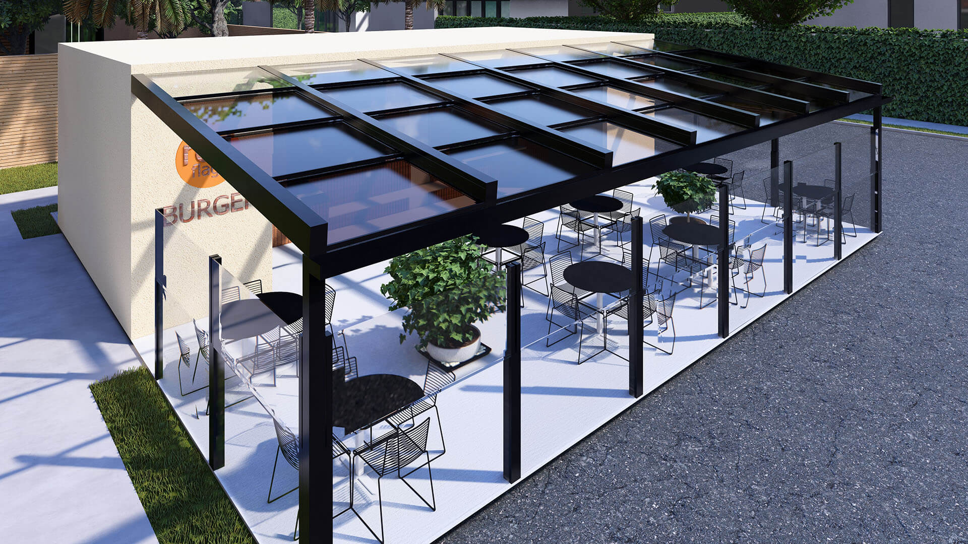 Cafés & RestaurantsWith our bioclimatic pergolas, wind protection systems, and retractable glass roofs, you can offer guests a comfortable, stylish environment—rain or shine.